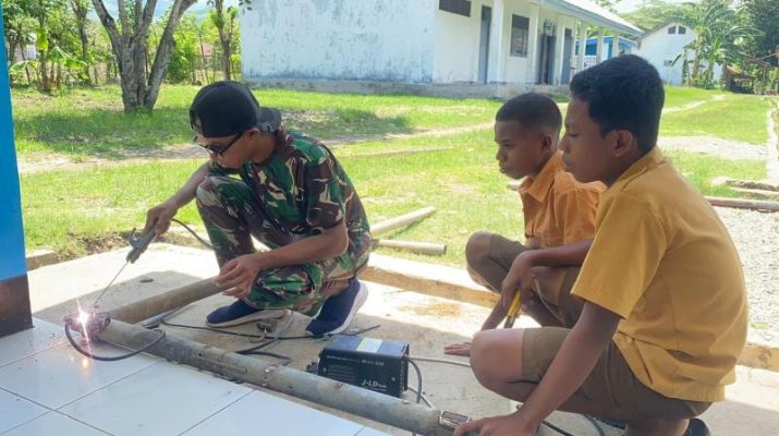 Gentra News NTT – Belu – Pos Nunura Satgas Yonif 741 GN bersama masyarakat dan para siswa membuat sarana olahraga yaitu lapangan sepak bola mini SMPN 2 Tasifeto Timur di Desa Tohe, Kecamatan Raihat, Kabupaten Belu. Selasa (17/12/2024).