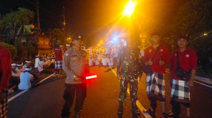 “Kami hadir untuk memastikan kegiatan adat seperti ini berjalan dengan aman dan tertib. Selain itu, kami juga mengedukasi warga agar tetap memperhatikan keselamatan selama prosesi berlangsung, terutama di jalan raya,” ujar Aiptu I Nyoman Sudana.