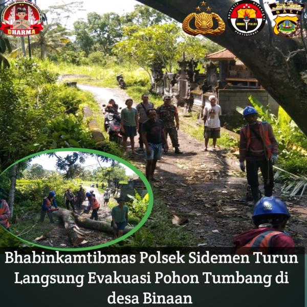 Gentra News BaliĀ – Polres Karangasem Polsek Sidemen, Bhabinkamtibmas Desa Sangkan Gunung Aiptu I Nyoman Darna Turun Langsung Evakuasi Pohon Tumbang di Dusun Dukuh Desa Sangkan Gunung, bersama Bhabinsa serta petugas PLN dan warga sekitar agar tidak mengganggu fasilitas jalan.