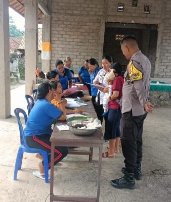 Seperti yang dilakukan oleh Bhabinkamtibmas desa Takmung, Kecamatan Banjarangkan, Klungkung Aiptu I Nengah Kariyasa melaksanakan sambang serta memonitor kegiatan Posyandu Balita di Balai Dusun Banda, Desa Takmung, Kecamatan Banjarangkan, Klungkung (16/1/2025).