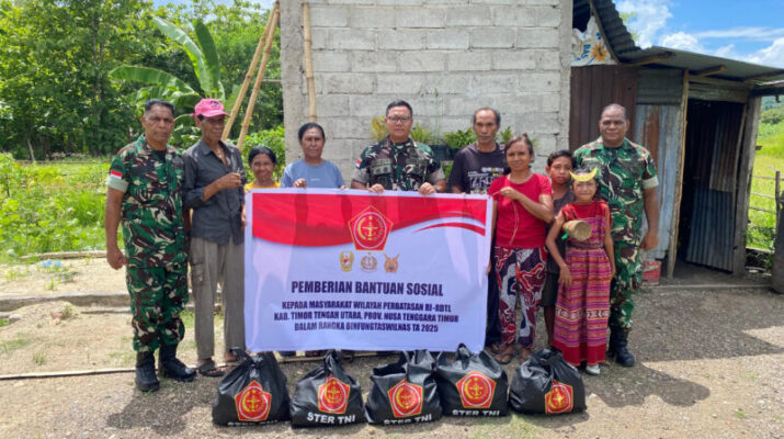 NTT-Kefamenanu., Kepedulian dan pengabdian TNI kepada rakyat kembali diwujudkan melalui aksi nyata di wilayah Perbatasan RI–RDTL. Bertempat di Dusun Tiga, Dusun Lima, Desa Motadik, dan Desa Maukabatan, Kecamatan Biboki Anleu, Kabupaten TTU, Komandan Kodim 1618/TTU Letkol Arm Didit Prasetyo Purwanto, S.E., melaksanakan kegiatan pembagian bantuan sembako kepada masyarakat dalam rangka mendukung program Pembinaan Fungsi Perbatasan Wilayah Nasional (Binfungtaswilnas), Senin (15/12/2025).