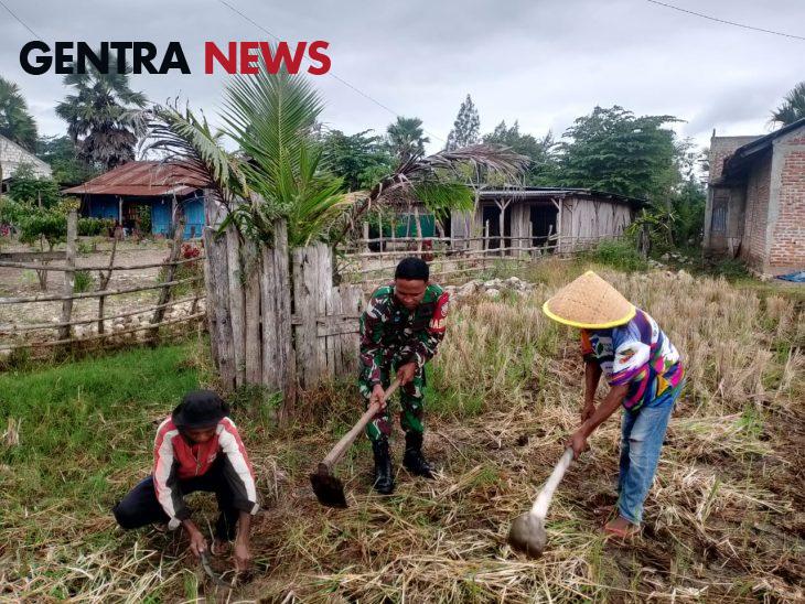 Hal ini dilakukan Babinsa Desa Tasain Koramil 1605-06/Halilulik Serda Peter Yandri saat mendampingi petani dalam menyiapkan lahan bekas sawah untuk ditanami sayur kol di Dusun Autowik A, Desa Tasain, Kecamatan Raimanuk, Kabupaten Belu NTT, Jumat (12/7/2024).