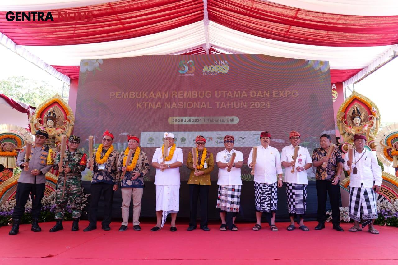 Tabanan PR – Kegiatan Rembug Utama dan Grand Opening Expo KTNA Nasional Tahun 2024 berlangsung di Kabupaten Tabanan, tepatnya di Area De Jukung Resto & Bar Tanah Lot, Desa Beraban, Kediri, Tabanan, Sabtu, (27/6), bertepatan dengan rahina Tumpek Landep. Kehadiran Menteri Pertanian RI diwakil Kepala Badan Penyuluhan dan SDM Pertanian, Dedi Nursyamsi, PJ Gubernur Bali, SM. Mahendra Jaya, Komisi IV DPR RI dan para Gubernur serta Bupati/Walikota se-Indonesia atau yang mewakili dan undangan terkait dalam kegiatan ini mendapat sambutan hangat dari Bupati Tabanan, Dr. I Komang Gede Sanjaya, SE, MM, beserta Ketua DPRD dan Forkopimda Tabanan serta jajaran Pemkab.