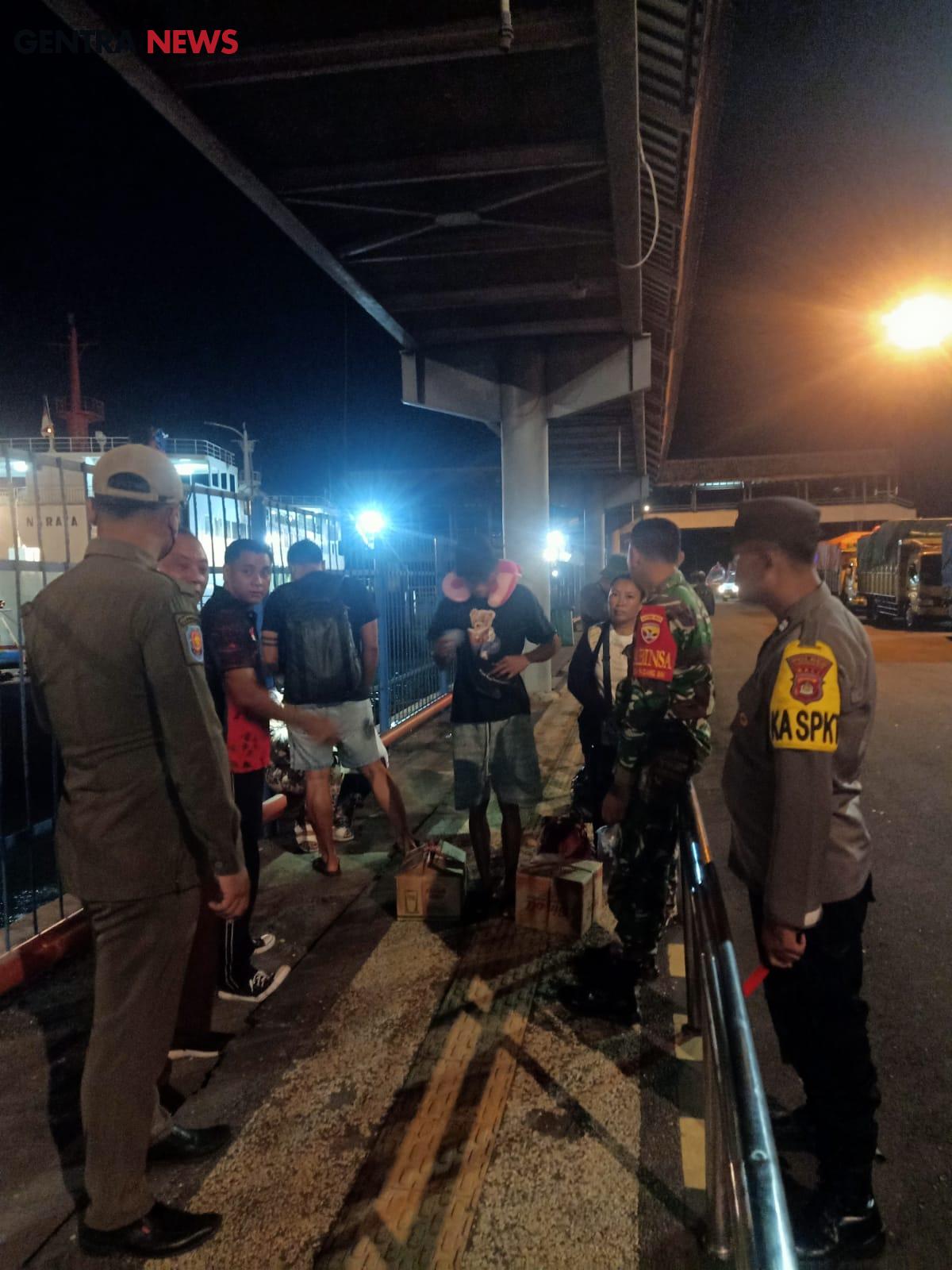 Mingg, 21/7/2024, terpantau saat penumpang turun dari kapal, Petugas Gabungan dari Team Duktang memberikan imbauan agar mengeluarkan dan menunjukkan identitas diri berupa KTP, karena ada pemeriksaan Identitas