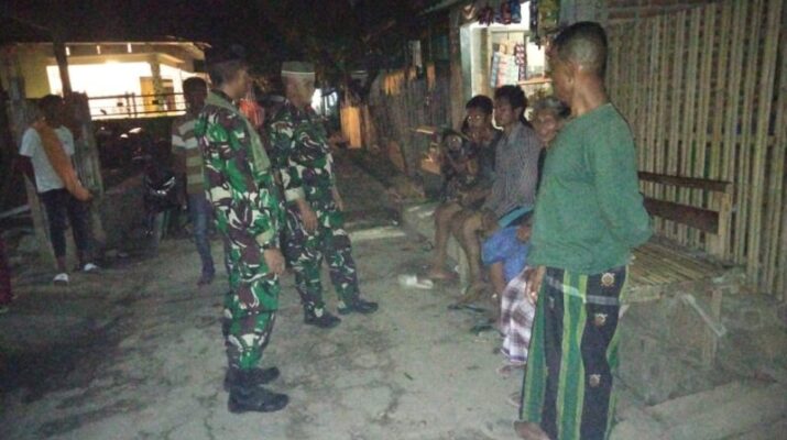 Sape,Bima, gentra.co.id – Kamis, 30 Oktober 2025, Sertu Syarif Hidayat selaku Babinsa Desa Naru bersama satu orang anggota Koramil 1608-03/Sape melaksanakan kegiatan Patroli Siskamling di wilayah Kecamatan Sape dan Kecamatan Lambu. Kegiatan ini dilakukan dalam rangka memantau situasi wilayah sekaligus mengantisipasi perkembangan keamanan di lingkungan masyarakat. Kehadiran Babinsa mendapat dukungan dari aparat desa serta tokoh masyarakat setempat.