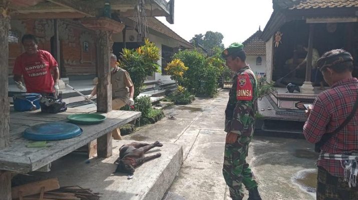 Gentra.co.id Bali  – Tabanan – Dalam rangka mencegah penyebaran penyakit rabies, Babinsa Desa Kukuh Koramil 1619-06/Marga Sertu I Gede Pt. Antarayasa turut serta mendampingi kegiatan pemberian vaksin pada hewan peliharaan warga (anjing) di Desa Kukuh, Kec. Marga, Selasa (7/1/2025)