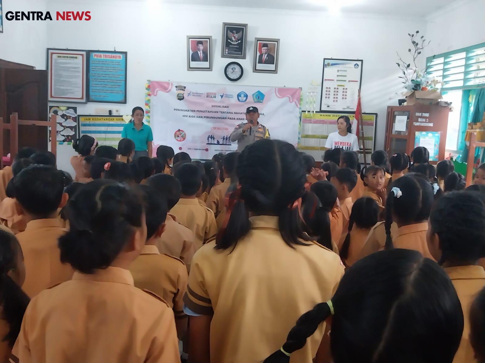 Gentra News Bali – Tampaksiring Gianyar. Bhabinkamtibmas desa Tampaksiring Aiptu Dewa Gede Alit Aryono sambangi SDN 3 Tampaksiring melaksanakan giat sosialisasi tentang bahaya perundungan / bullying dan sosialisasikan tertib lalu lintas (2/8/2024)