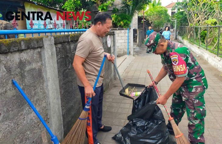 Gentra news Bali-DENPASAR – Babinsa Koramil 1611-07/Denbar Kodim 1611/Badung Peltu Agung Wirata bersama Bhabinkamtibmas dan perangkat desa serta warga melaksanakan gotong royong pembersihan dipimpin oleh Perbekel Desa Dauh Puri Kangin bertempat di Wilayah Desa Dauh Puri Kangin Kecamatan Denpasar Barat Kota Denpasar. Jum’at (05/07/24).
