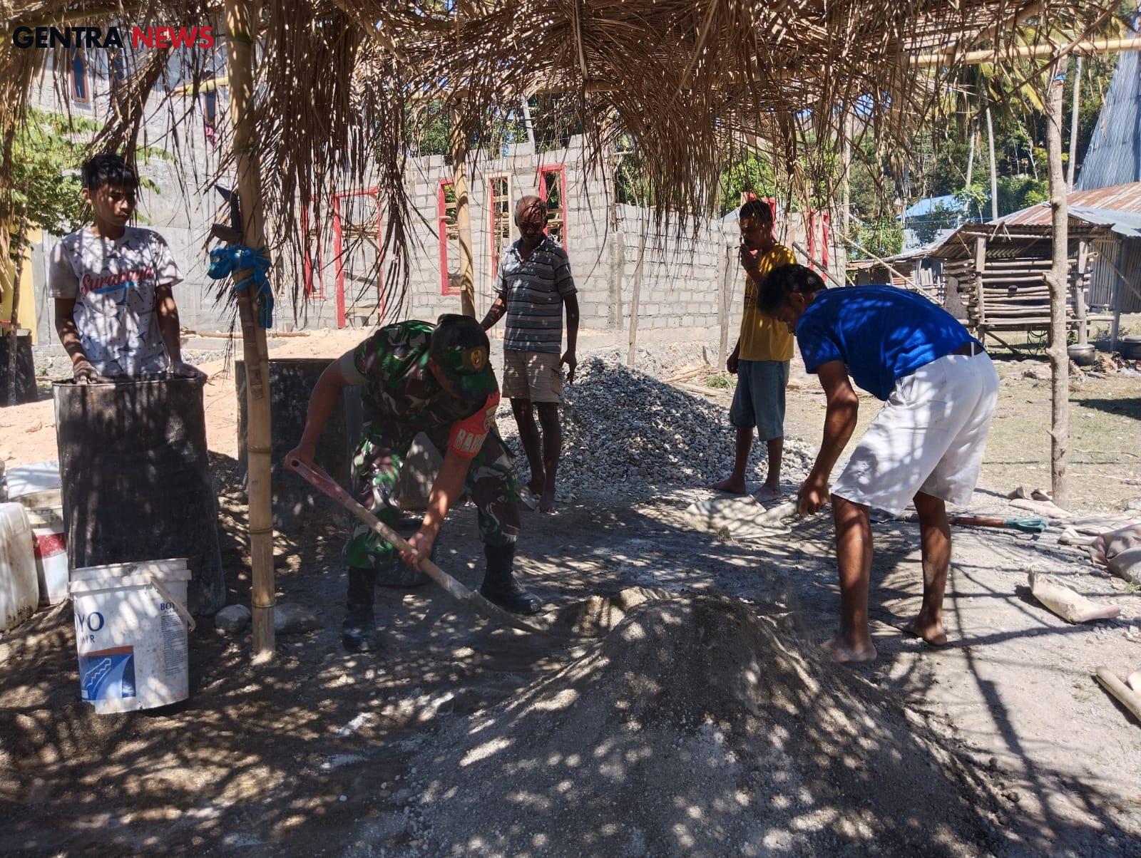 Gentra News NTT – SUMBA BARAT, Terciptanya sinergitas TNI dengan rakyat, Babinsa Koramil 02/Walakaka Kodim 1613/Sumba Barat Serda Alifin membantu warga binaan yang sedang kerja rumah di Desa Laboya Bawa Kecamatan Lamboya Kabupaten Sumba Barat, Rabu (28/8/2024).