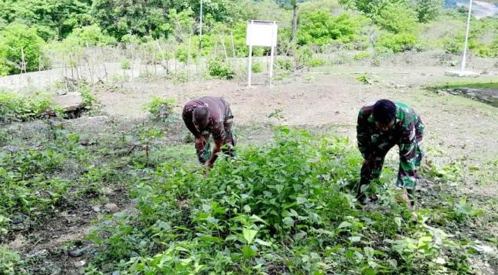 Kegiatan membersihkan sekitar pangkalan Pos Satgaster ini merupakan kegiatan rutin setiap hari yang sering dilakukan para personil Pos Satgaster Halibete II.