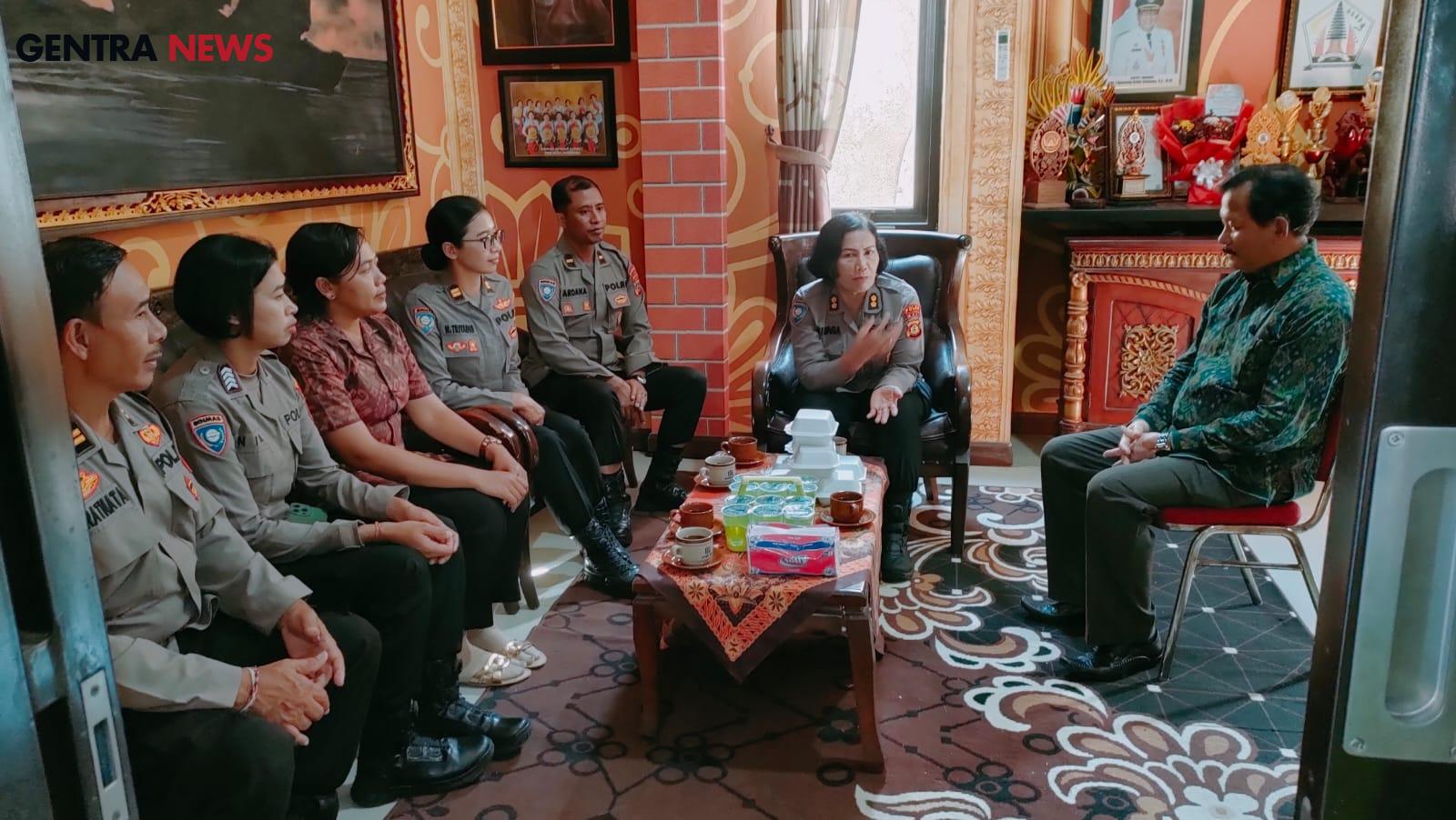 Tim Dit Binmas Polda Bali yang dipimpin Kasubdit Bin Polmas Dit Binmas Polda Bali AKBP Sindar Sinaga, S.P., menyerahkan bantuan berupa Alkom HT, rompi, senter lalin dan Pluit. (Selasa 9 Juli 2024 )