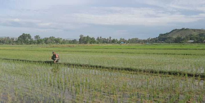 Gentra.co.id Babinsa Koramil 02/Rindi Umalulu Kodim 1601/Sumba Timur Serda Syamsurijal melaksanakan kegiatan pendampingan kepada petani memantau perkembangan tanaman padi sawah di Desa Katikuluku, Kecamatan Matawai La Pawu, Kabupaten Sumba Timur, Selasa (08/04/2025)