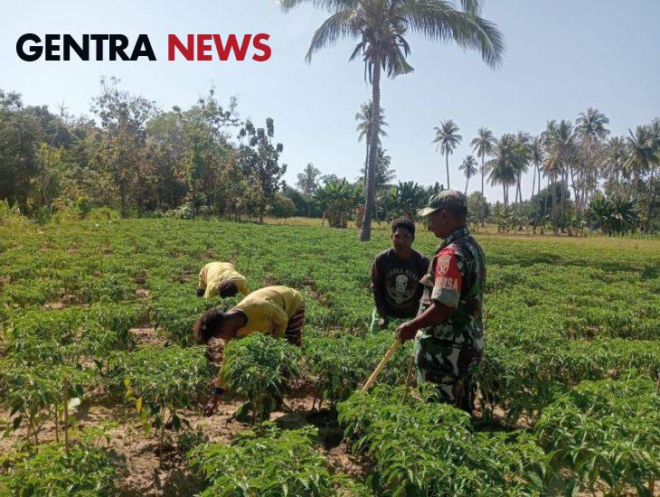 Gentra News NTT – KODIM 1605/BELU, Babinsa Desa Litamali Koramil 1605-05/Kobalima Sertu Maximus Nahak melaksanakan kegiatan pendampingan terhadap kelompok Tani Remanu dalam rangka pembersihan hama dan pemberian pupuk pada tanaman cabe di Dusun Nularan, Desa Litamali, Kecamatan Kobalima, Kabupaten Malaka, Jumat (4/10/2024).