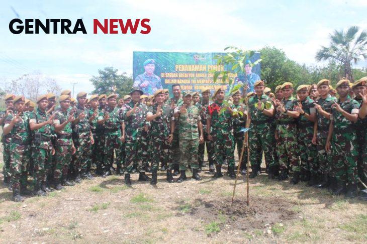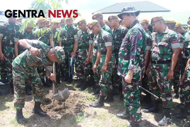 Gentra News NTT – Kupang – Dalam rangka mendukung program unggulan Kasad “TNI AD Menyatu dengan Alam”, Dandim 1604/Kupang Kolonel Inf Wiwit Jalu Wibowo mendampingi Danrem 161/Wira Sakti Brigjen TNI Joao Xavier Baretto Nunes, S.E., M.M., pada kegiatan penanaman pohon di Yonarmed 20/BY, Desa Naunu, Kecamatan Kupang Timur, Kabupaten Kupang. Kegiatan ini dilaksanakan di Jalan Timor Raya Km. 34 dan diikuti oleh Danyon Armed 20/BY beserta 220 prajurit. Jumat (21/09/2024).