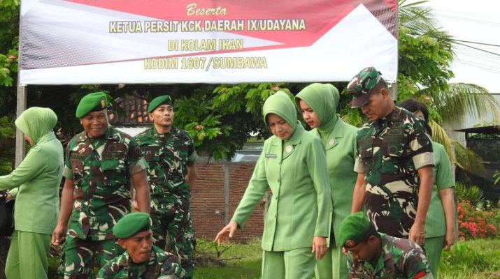Dandim 1607/Sumbawa Dampingi Pangdam IX/Udayana Beserta Rombongan Tebar Benih Ikan di Kolam