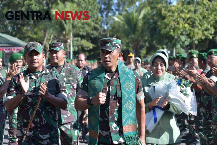 Gentra News NTB – Sumbawa Besar, Kodim 1607/Sumbawa menyambut kedatangan Pangdam IX/Udayana Mayor Jenderal TNI Bambang Trisnohadi dan Ketua Persit KCK Daerah IX/Udayana, Ny. Dian Bambang Trisnohadi beserta rombongan di Markas Kodim 1607/Sumbawa. Kamis, (08/08/2024).
