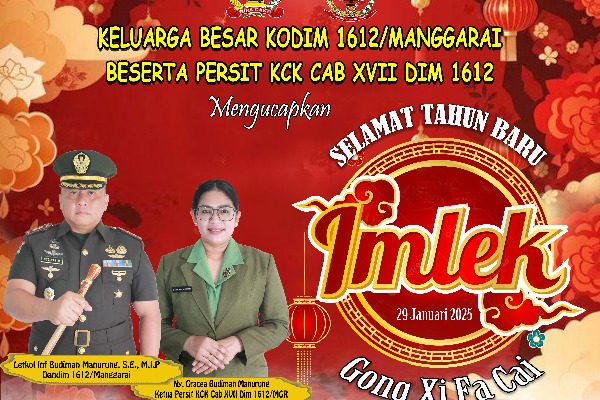 “Saya, Letkol Inf Budiman Manurung, S.E., M.I.P., beserta seluruh jajaran Kodim 1612/Manggarai, mengucapkan Selamat Tahun Baru Imlek 2025 bagi saudara-saudara kita yang merayakan. Semoga di tahun yang baru ini, kita semua diberikan kesehatan, keberkahan, dan kesuksesan. Mari kita terus menjaga persatuan, toleransi, dan semangat kebersamaan demi kemajuan bangsa,” ungkap Dandim.