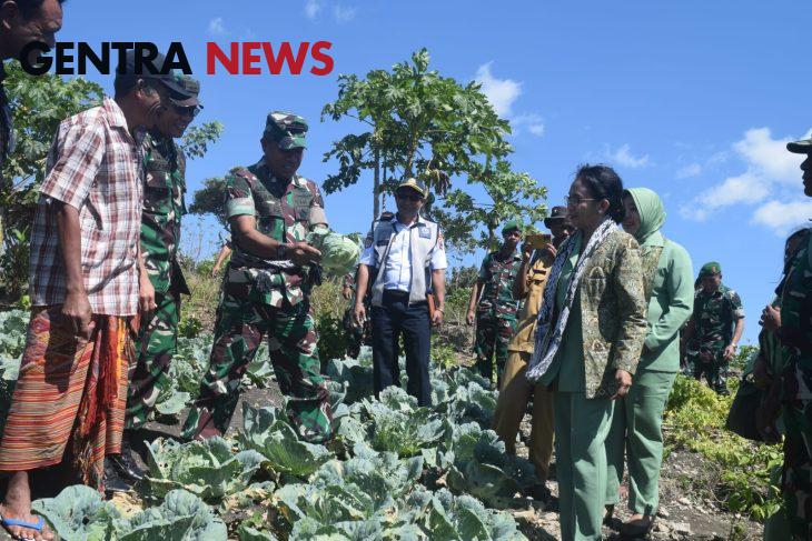Dalam kunjungannya Danrem 161/WS Melaksanakan panen hasil pertanian Para petani di desa Mnelalete di Antaranya ada Singkong, Kol, Cabai Dan Pepaya