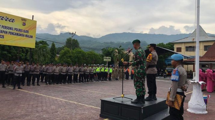 Gentra.co.id NTTĀ – NTT-ALOR – Dalam rangka pengamanan malam pergantian tahun 2024 ke tahun 2025, Dandim 1622/Alor Letkol Inf Amir Syarifudin, SH bersama Kapolres Alor AKBP Supriadi Rahaman, S.I.K., M.M memimpin langsung Apel Siaga, berlangsung di lapangan Apel Mapolres Alor, Selasa (31/12/2024).