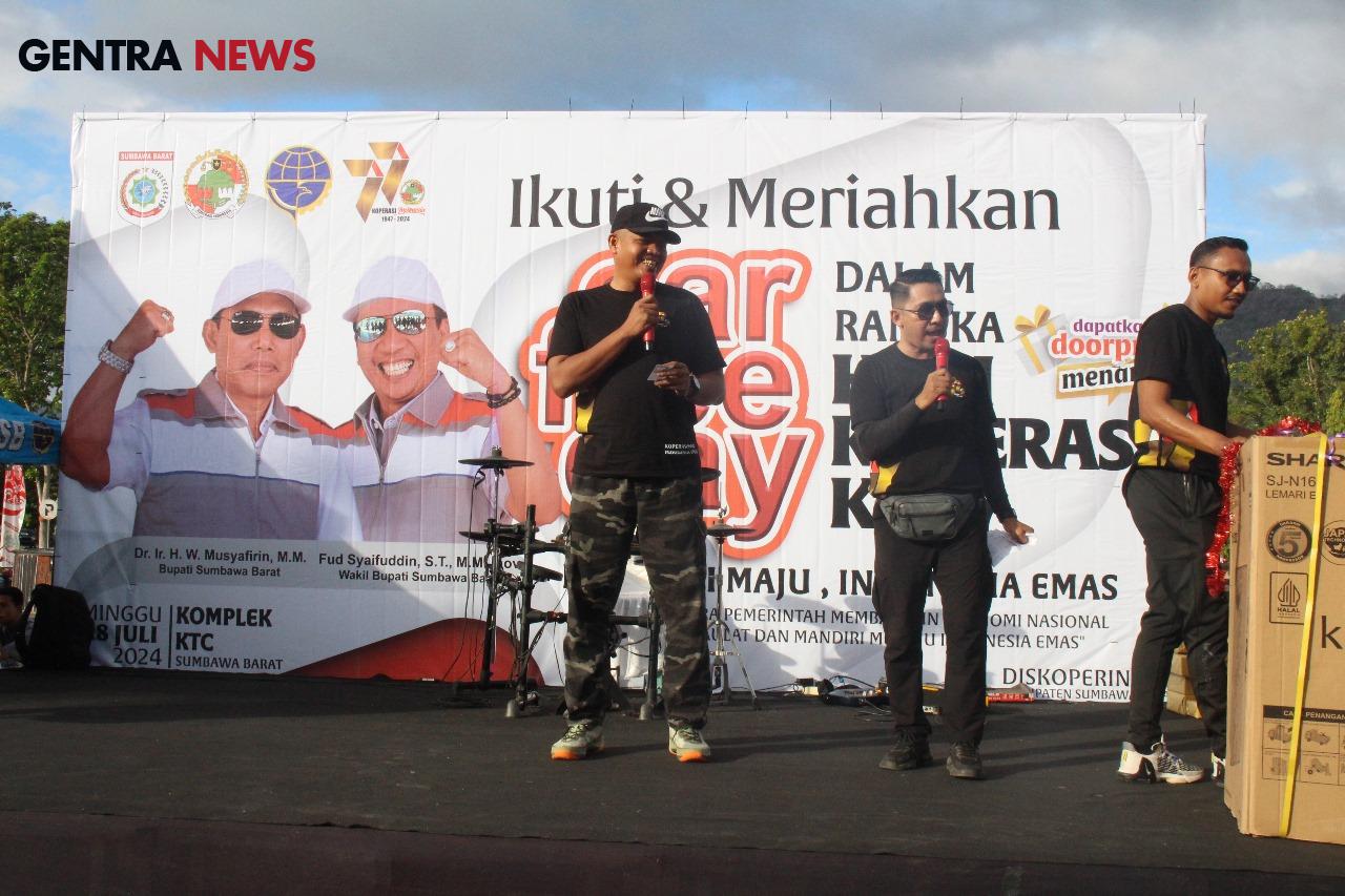 Gentra News NTB-Sumbawa Barat – Dandim 1628/Sumbawa Barat Letkol Inf Andri Karsa S.Sos.,M.Han., nampak semangat menghadiri kegiatan meriahkan car free day dalam rangka hari koperasi ke 77 di