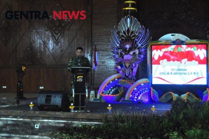 Kegiatan diawali dengan pementasan tarian penyambutan yang dilanjutkan dengan menyanyikan lagu Indonesia Raya dan dilanjutkan dengan sambutan dari Dandim 1617/Jembrana Letkol Inf M. Adriansyah S.I.P. M.I.P., yang pada intinya menyampaikan, agenda kampanye atau komunikasi politik Pilkada Kabupaten Jembrana merupakan momentum untuk mendorong masyarakat agar menggunakan dengan tepat hak pilih dan menjaga kedamaian secara umum dan khususnya di Kabupaten Jembrana, saya selaku Dandim beserta anggota Kodim 1617/Jembrana bersinergi dengan Polri sangat mendukung penuh terselenggaranya Pilkada di Kabupaten Jembrana berjalan dengan aman dan lancar .