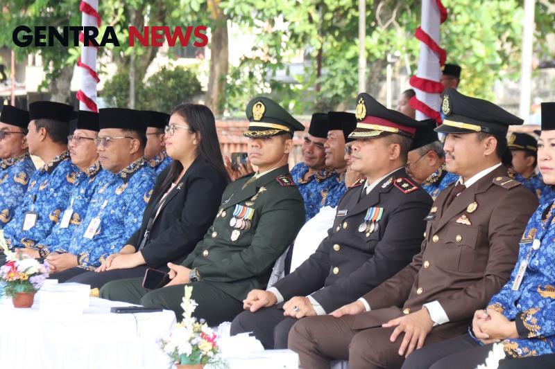 Gentra News Bali – Klungkung – Dandim 1610/Klungkung Letkol Inf Armen,S.Ag.,M.Tr ( Han ) menghadiri Upacara Peringatan Hari KORPRI ke-53 dan HUT PGRI ke- 79 serta HUT Hari Kesehatan Nasional (HKN) ke 60 tahun 2024, Jumat ( 29/11/24 ).