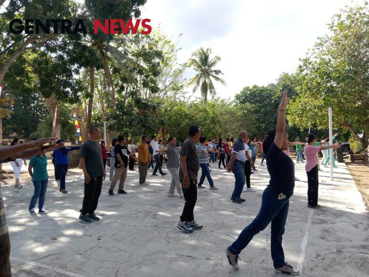 Gentra News NTT – Kupang – Pgs. Danramil 1604-6/Batakte, Letda Inf Alexander Mahoklory, bersama anggota Babinsa Koramil Batakte turut serta dalam kegiatan Gerakan Masyarakat Hidup Sehat (GERMAS) di Kecamatan Kupang Barat. Acara ini diawali dengan senam bersama dan dilanjutkan dengan penyuluhan edukasi masyarakat di daerah rawan bencana, yang berlangsung di Lapangan Apel dan Aula Kecamatan Kupang Barat. Jumat (23/08/2024).