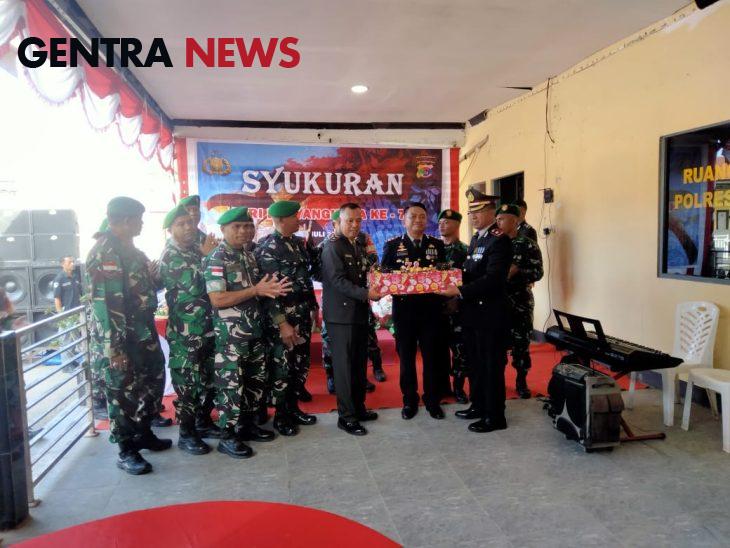 Gentra News *Kupang* – Danramil 1604-01/Kota, Mayor Inf Hendri Dunant, S.I.P, beserta perwira dan anggota dari Koramil 02/Camplong, 04/Amarasi, 05/Sulamu, dan 06/Batakte, menghadiri upacara memperingati HUT Bhayangkara ke-78. Upacara ini dipimpin oleh Kapolres Kupang, AKBP Anak Agung Gede Anom Wirata, S.I.K., M.H, di Lapangan Upacara Polres Kupang, Desa Baubau, Kabupaten Kupang. Selain mengikuti upacara, mereka juga memberikan kejutan berupa kue ulang tahun kepada Kapolres dan jajarannya.