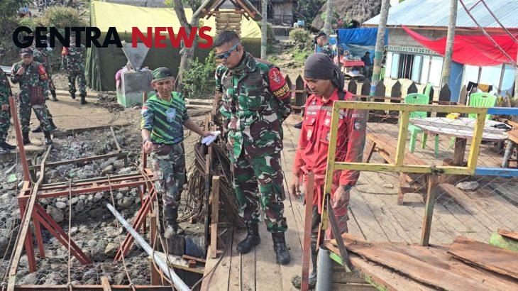 Dalam peninjauan ini, Komandan Satuan Tugas menekankan kepada seluruh anggota dan Masyarakat yang bergotong royong membangun jembatan untuk memperhatikan faktor keamanan dalam pengerjaan jembatan.