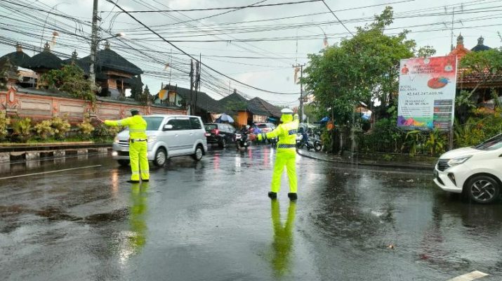 Gentra.co.id Bali – ABIANSEMAL – Hujan yang mengguyur wilayah kecamatan Abiansemal pada Selasa (28/01) Pkl. 14.00 wita, tidak menghalangi semangat personil Polsek Abiansemal dalam menjalankan tugas mereka. Para petugas dengan sigap mengatur arus lalu lintas di sejumlah titik rawan kemacetan, memastikan kelancaran dan keamanan pengguna jalan.