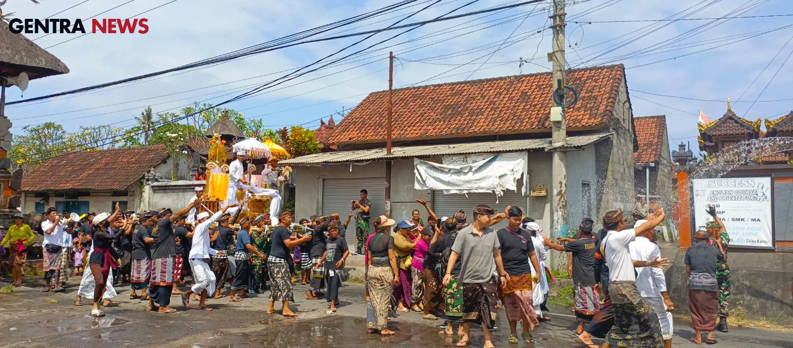 Ditengah ratusan warga, tampak puluhan personel Satgas TMMD 121 Kodim Klungkung terjun langsung dan berbaur bersama warga untuk ikut serta dalam tradisi arak-arakan pemereman ( wadah ) dari rumah duka menuju kuburan.