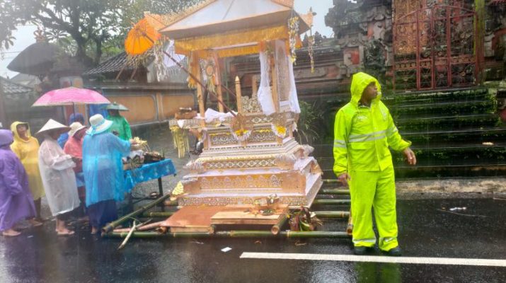 Jumat, 24 Januari 2025 pukul 08.00 wita Bhabinkamtibmas Desa Kaba-kaba Aipda I Made Raka Adiana, S.H. bersinergi dengan pecalang mengamankan kegiatan ngaben almarhumah Ni Wayan Widi Asih di Banjar Gaduh Desa Kaba-kaba Kediri Tabanan ditengah derasnya guyuran hujan namun polri selalu siap amankan kegiatan masyarakat.