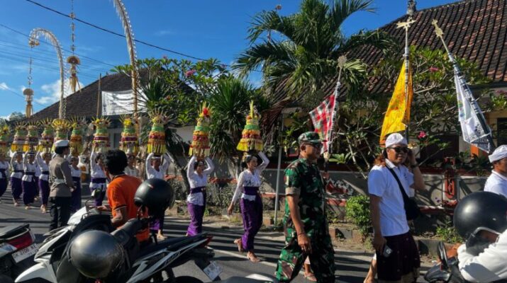 Hal tersebut kembali kami wujudkan hari ini dengan memberikan pengawalan dan pengamanan kegiatan upacara keagamaan di Banjar Adat Tanah Bias,”terangnya.