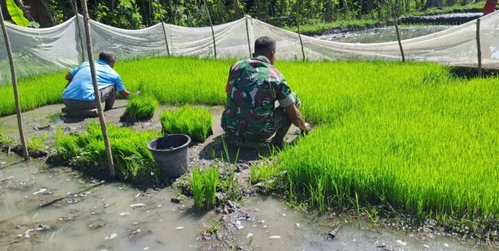 NTT – Sumba Timur. Babinsa Koramil 06/Karera jajaran Kodim 1601/Sumba Timur. Sertu Junus Ratu turut serta mensukseskan program ketahanan pangan,dengan membantu petani mencabut bibit padi di persawahan, Desa Kakaha, Kecamatan Ngadu Ngala, Kabupaten Sumba Timur. Kamis (31/07/2025)
