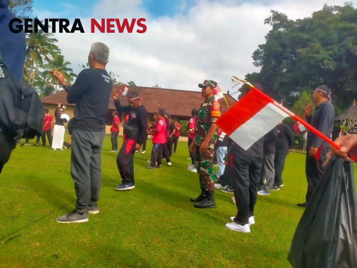 Tampak di gambar, Babinsa Koramil 01/Bangli Kodim 1626/Bangli, Serma I Wayan Sujana berbaur dengan pegawai dengan melaksanakan pemantauan sekaligus pengamanan kegiatan di wilayah binaan, dalam rangka memperingati HUT Ke 79 Kemerdekaan Republik Indonesia Tahun 2024 yang diikuti oleh peserta dari pegawai pemerintahan kecamatan, Kelurahan dan Desa yang dilaksanakan di Lapangan Tugu Pahlawan Penglipuran, Kelurahan Kubu, Kecamatan Bangli, Kabupaten Bangli. Jumat (16/8/24).