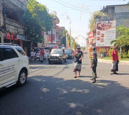 Guna mendukung kelancaran pelaksanaan upacara tersebut, Babinsa Kelurahan Karangasem bersama Bhabinkamtibmas, Dishub dan Pecalang Desa Adat Karangasem bersinergi melaksanakan pengamanan.