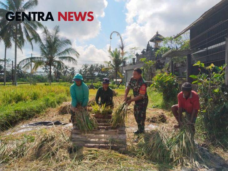 Babinsa Serda Sang Komang Teg Redana mengatakan hadirnya Babinsa dalam mendukung Ketahanan Pangan dengan penuh semangat serta terjun langsung ke sawah untuk membantu para petani saat memanen padi agar terwujud kemanunggalan TNI dengan Rakyat.