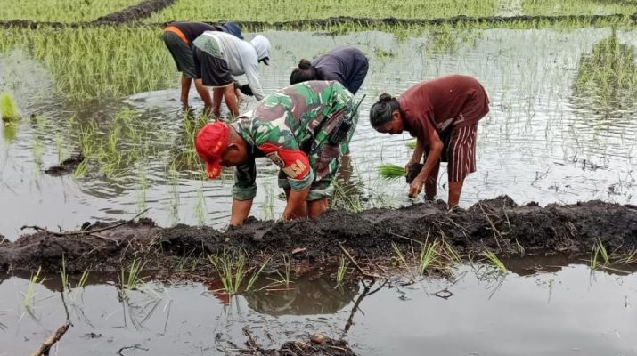Gentra.co.id NTT – Pendampingan terhadap petani terus dilakukan oleh Babinsa guna meningkatkan hasil pertanian sehingga mewujudkan ketahanan pangan di wilayah.Seperti halnya yang dilakukan oleh Babinsa Koramil 06/Karera,Kodim 1601/Sumba Timur Serka Dominggus Lay melaksanakan pendampingan, membantu petani binaan di Desa Ngonggi,Kecamatan Karera,Kabupaten Sumba Timur untuk menanam padi di sawah. Rabu (08/01/2025).