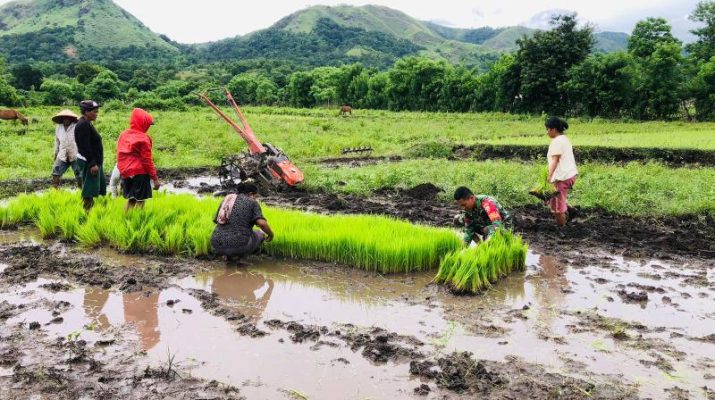 Seperti halnya yang dilakukan Babinsa Pratu Hezron yang tak segan untuk terjun langsung ke sawah, membantu para petani untuk mengumpulkan bibit padi yang siap untuk ditanam di lahan milik bapak Umbu.