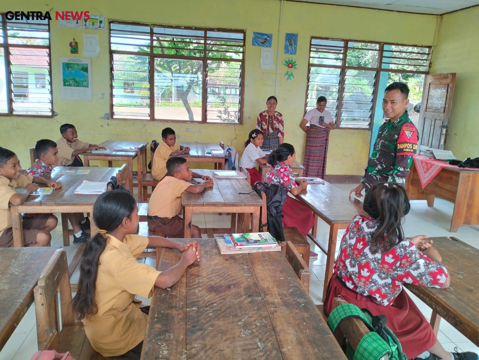 Gentra News NTT – Bakitolas, Pos Nelu Satgas Yonkav 6/Naga Karimata Berikan pelajaran Bahasa Inggris di SD Negeri Hoka yang ada di Desa Bakitolas, Kec. Naibenu, Kab. TTU, Prov. NTT. (19/7/24)