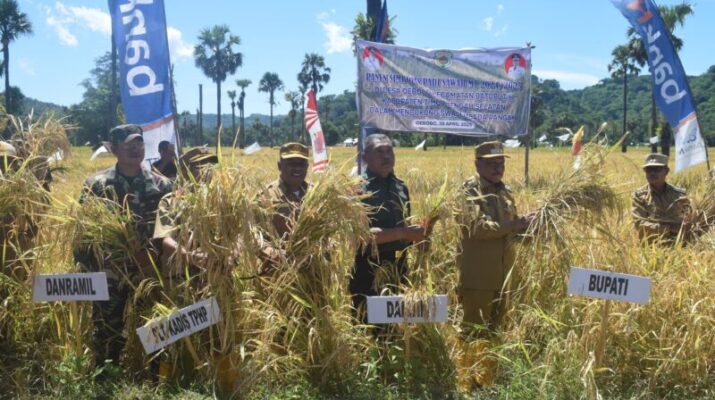 “Panen raya ini menjadi bukti nyata Kerja keras para petani, kelompok tani, Serta sinergitas antara berbagai sektor, Termasuk TNI, Polri, dan perangkat Daerah,” ujar Bupati.