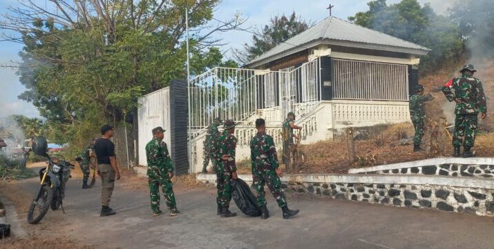 NTT-SIKKA Kodim 1603/Sikka menggelar Karya Bhakti pembersihan sampah di Taman Makam Bahagia (TMB) Iligetang Jln. Dua Toru, Kelurahan Nangalimang, Kecamatan Alok Timur, Kabupaten Sikka. Kegiatan ini turut dihadiri oleh Pasi Teritorial Kodim 1603/Sikka, Kasat Pol PP, Dinas Lingkungan Hidup, dan masyarakat setempat, Jumat(08/08/2025).