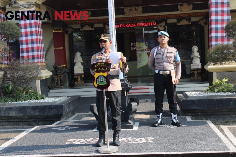 Mangupura – Kepala Kepolisian Resor Badung AKBP Teguh Priyo Wasono, S.I.K. pimpin Apel gelar pasukan Operasi Mantap Praja Agung 2024 Tahap Kampanye dalam rangka pemilihan pengamanan Bupati dan Wakil Bupati Badung Tahun 2024 di Daerah Hukum Polres Badung, di Lapangan Apel Polres`Badung Jalan Kebo Iwa 1 Kecamatan Mengwi Kabupaten Badung, Selasa 24 September 2024, pagi pukul 08.30 wita.
