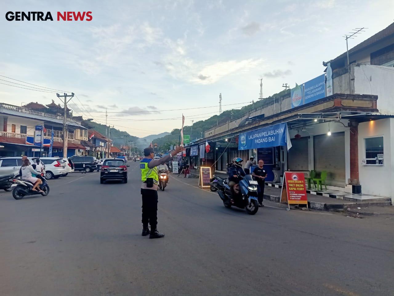 Seperti yang dilakukan Anggota Polsek Kawasan Pelabuhan Padangbai, setiap pagi selalu menempati pos PH pagi untuk lakukan pengaturan lalu lintas, Rabu, 14/8/2024.