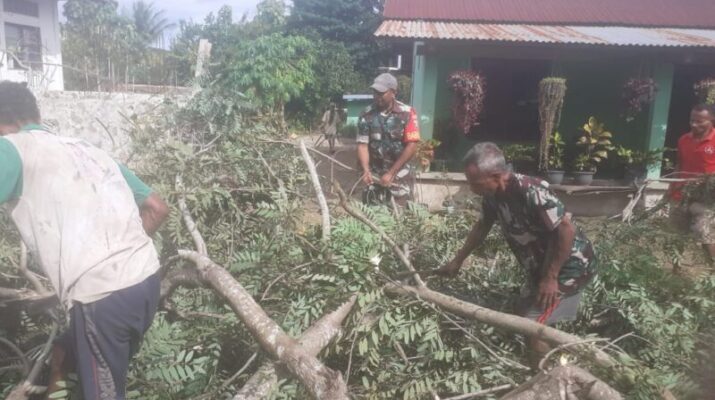 Pohon besar yang tumbang akibat hujan dan angin kencang sempat mengganggu aktivitas warga jemaat serta berpotensi menimbulkan kerusakan pada bangunan pastori. Mendapat informasi tersebut, Serka Tarsisius segera turun tangan dan berkoordinasi dengan warga sekitar untuk melakukan evakuasi dan pembersihan secara gotong royong.