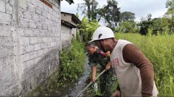 Untuk itu dengan berkoordinasi bersama pak Babinsa, pagi ini kita bergotong royong untuk membersihkan saluran air ini agar kembali bersih dan normal,”tegasnya.
