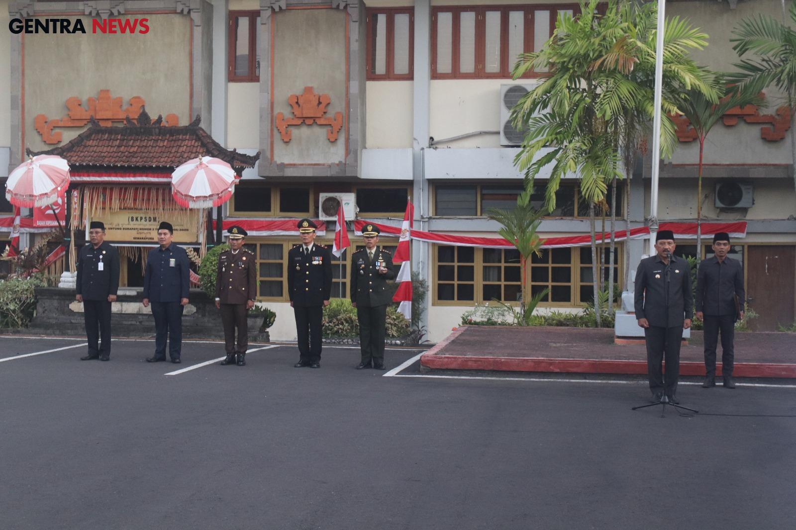 Upacara yang dipimpin langsung oleh Pj Bupati Klungkung I Nyoman Jendrika tersebut digelar di halaman belakang Kantor Bupati Klungkung, Kelurahan Semarapura Tengah ini turut pula dihadiri oleh Forkopimda beserta para OPD terkait dilingkungan Pemkab Klungkung termasuk didalamnya Dandim 1610/Klungkung Letkol Inf Armen,S.Ag.,M.Tr ( Han ), Kamis ( 15/08/24 ).