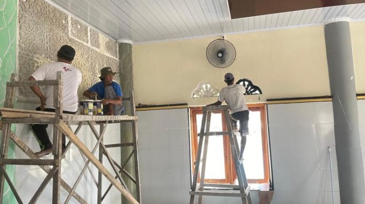melakukan sasaran tambahan rehab Masjid Nurul Iman sudah memasang keramik dinding dalam masjid, yang bertempat Dusun Jorok Tiram, Desa Batu Putih, Kecamatan Taliwang, Kabupaten Sumbawa Barat.