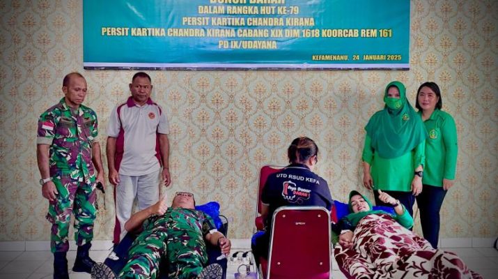 Gentra News NTT- KEFAMENANU., Jumat 24 Januari 2025., Dalam rangka memperingati HUT ke-79 Persit Kartika Chandra Kirana, Persit Kartika Chandra Kirana Cabang XIX Dim 1618 Koorcab Rem 161/WS PD XI/Udayana menggelar kegiatan donor darah di Aula Makodim 1618/TTU, Jalan A. Yani, Kelurahan Kefamenanu Selatan, Kecamatan Kota Kefamenanu, Kabupaten Timor Tengah Utara (TTU).