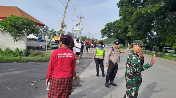 Kegiatan yang diikuti oleh ratusan masyarakat itupun tak luput dari pengawalan dan pengamanan aparat Babinsa, Bhabinkamtibmas dan pecalang.